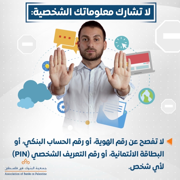 ضمن حملة جمعية البنوك في فلسطين للتوعية بــ "الاحتيال الإلكتروني"، المستمرة منذ شهر تموز من العام 2024، نشرت مجموعة من الفيديوهات والتصاميم المتنوعة والسبوتات الإذاعية التوعوية وكذلك المقابلات الإذاعية والتلفزيونية المحلية والدولية.